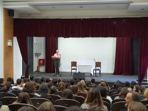 Οι μαθήτριες και οι μαθητές του Μουσικού Σχολείου και του ΓΕΛ Βαρθολομιού, στο τέλος της ομιλίας του κ. Δάσιου, του έθεσαν ερωτήσεις σχετικά με τα όσα παρουσίασε καθώς και με τη διαδικασία των Πανελλαδικών εξετάσεων για τις οποίες είναι προφανής η αγωνία και το ενδιαφέρον τους.