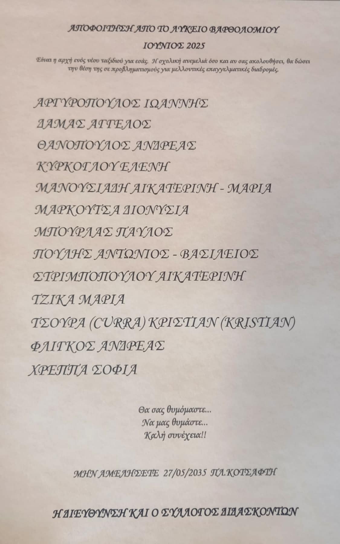 Ο σύλλογος του ΓΕΛ Βαρθολομιού 2024-2025.